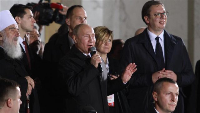 Nakon obilaska Hrama, ruski predsednik uzeo je mikrofon pred desetinama hiljada građana u Beogradu koji su došli da ga pozdrave.