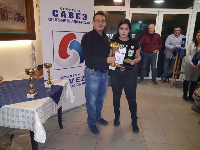 Na svečanoj dodeli nagrada sportistima opštine Vladičin Han, priznanje za najboljeg sprotistu pripalo je Vladani Radonjić članici Kluba dizača tegova „Morava“ Vladičin Han, dok je za najboljeg mladog sportistu proglašen Mihajlo Aleksić, član fudbalskog kluba „Morava“ iz Hana.